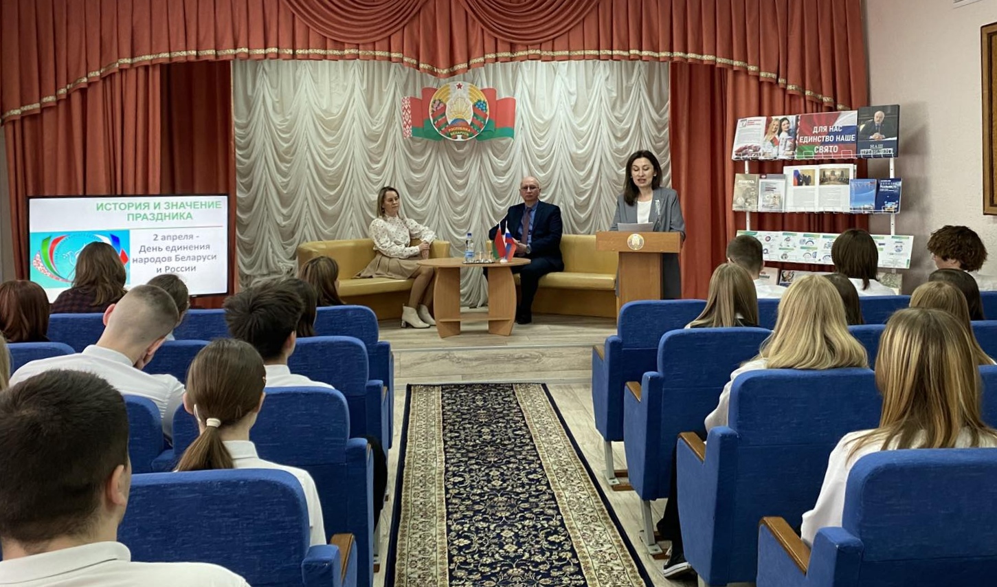 2 апреля в целях патриотического воспитания в центральной районной библиотеке для учащихся городских школ прошла диалоговая площадка «Союз народов будет вечным», приуроченная ко Дню единения народов Беларуси и России.