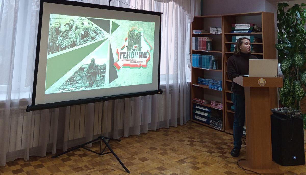 В Международный день памяти жертв преступления геноцида в центральной районной библиотеке прошёл круглый стол «Геноцид. Вспомнить всё. Помнить каждого», в рамках которого учащиеся УО «Дрогичинский государственный аграрный колледж» узнали о причинах и об ужасающих фактах этой трагедии, а также познакомились с соответствующей литературой.