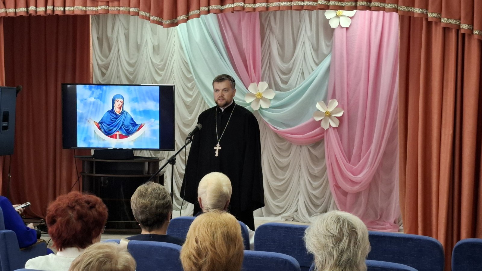 Также на мероприятии присутствовал иерей Сретенского храма г. Дрогичина Александр Полоско, который рассказал об истории и значении праздника Покров Пресвятой Богородицы и акцентировал внимание присутствующих на его главной идее: родительское сердце полно милосердия, готовности прощать и бесконечной любви к своим детям, несмотря ни на какие ошибки.