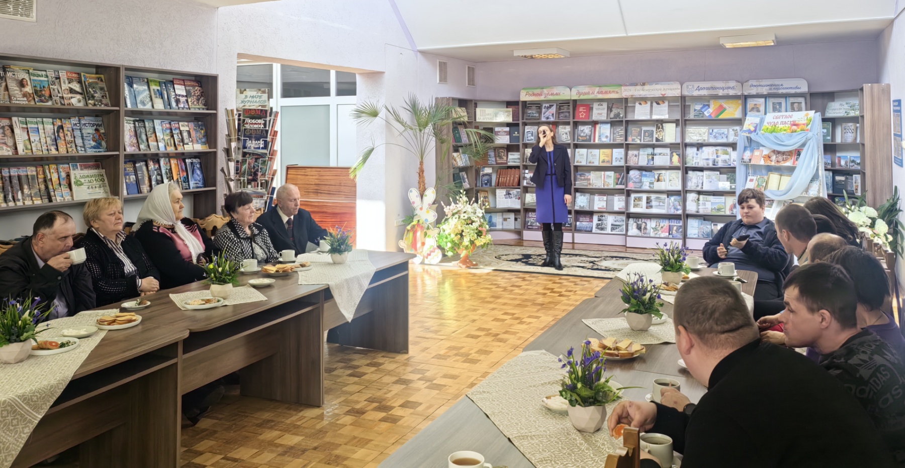 14 апреля в центральной районной библиотеке для членов отделения социальной реабилитации инвалидов ГУ «Дрогичинский ТЦСОН» и активистов Дрогичинской РО ОО «БелОИ» прошел литературно-музыкальный праздник «С Пасхой светлой поздравляем!», в рамках которого состоялась встреча с клириком храма Сретения Господня в г. Дрогичине иереем Александром Полоско.